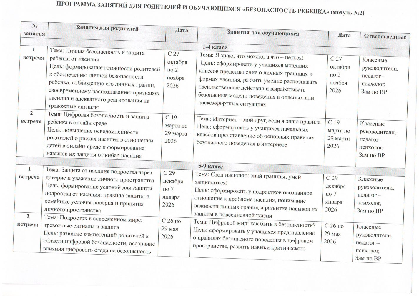 Программа занятий для родителей и обучающихся "Безопасность ребенка" (модуль №2)