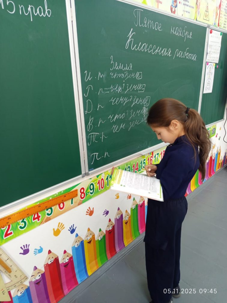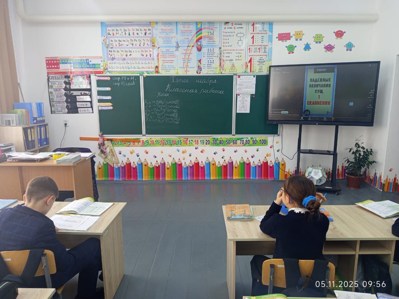 5 қараша күні 4-сыныпта орыс тілі сабағы өтті. Тақырыбы – «1 жіктегі зат есімдердің септік жалғаулары».
