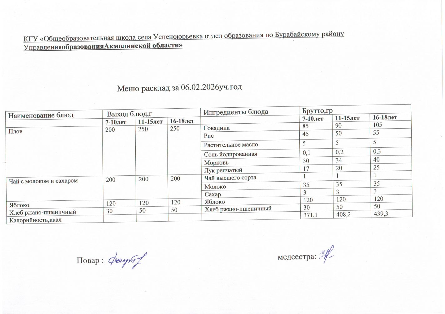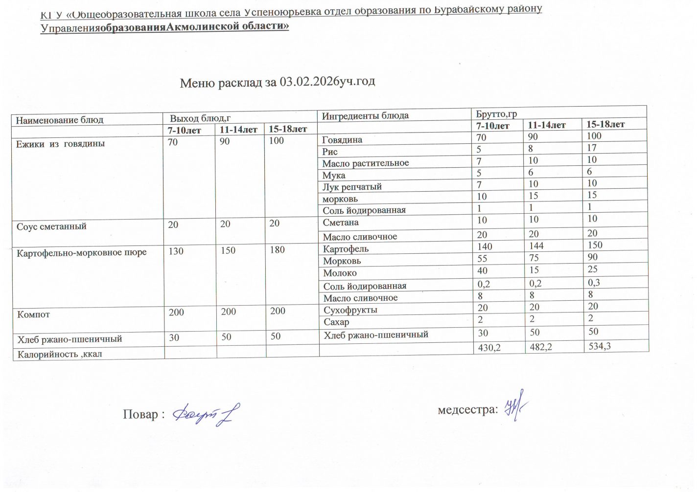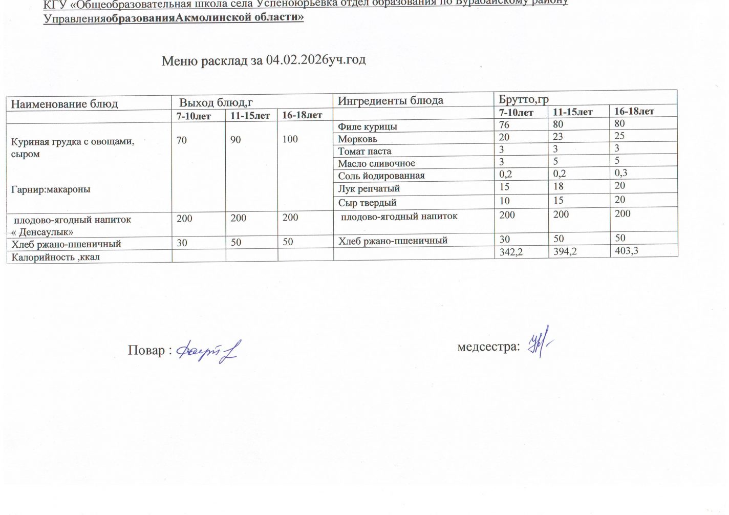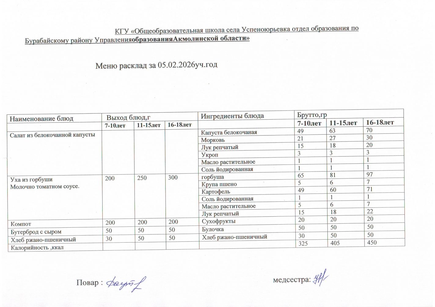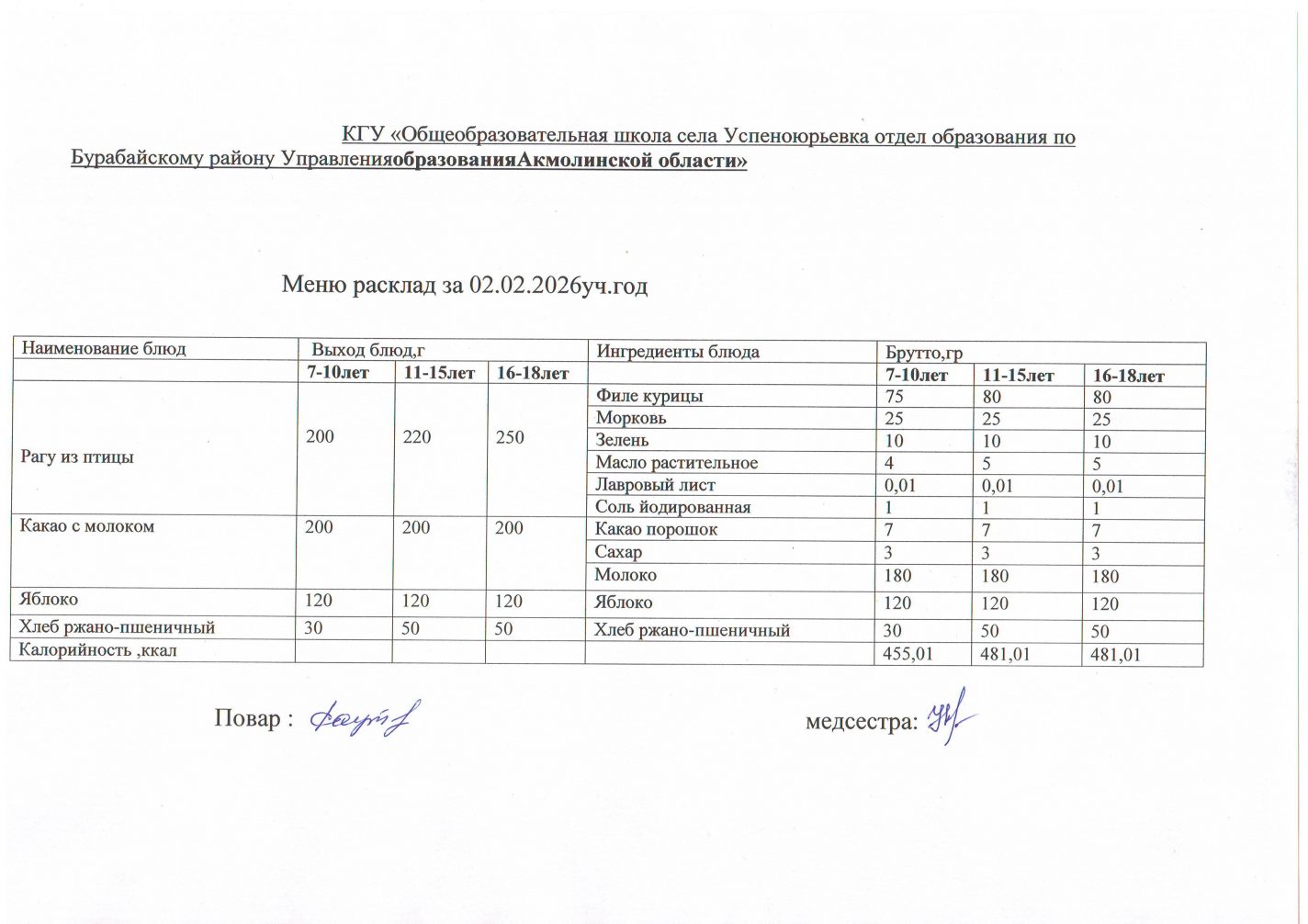 Меню расклад 02.02. - 06.02