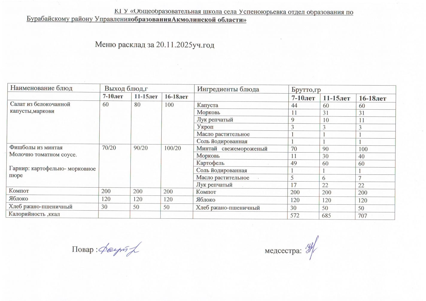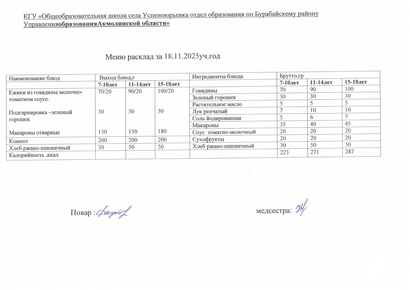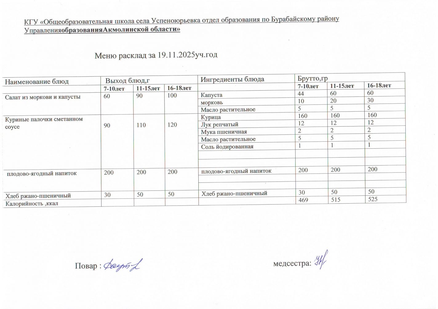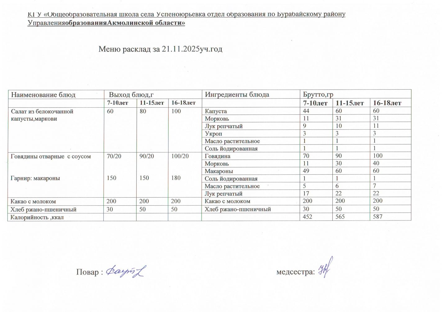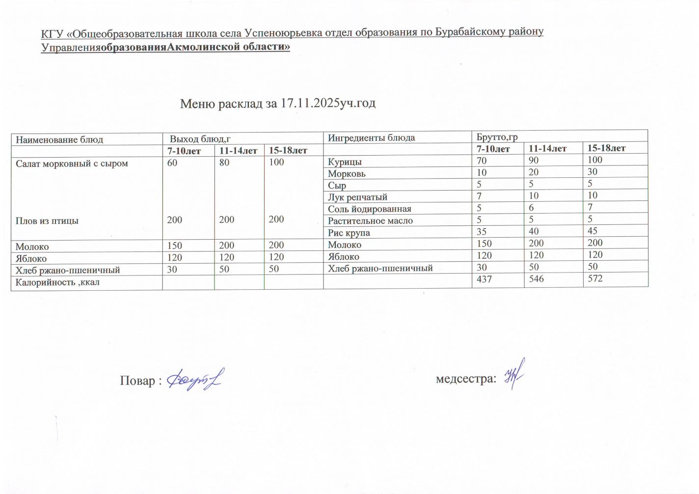 Меню расклад по школьному питанию. 17.11.25г.-21.11.25г.
