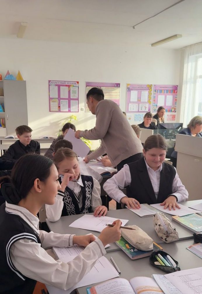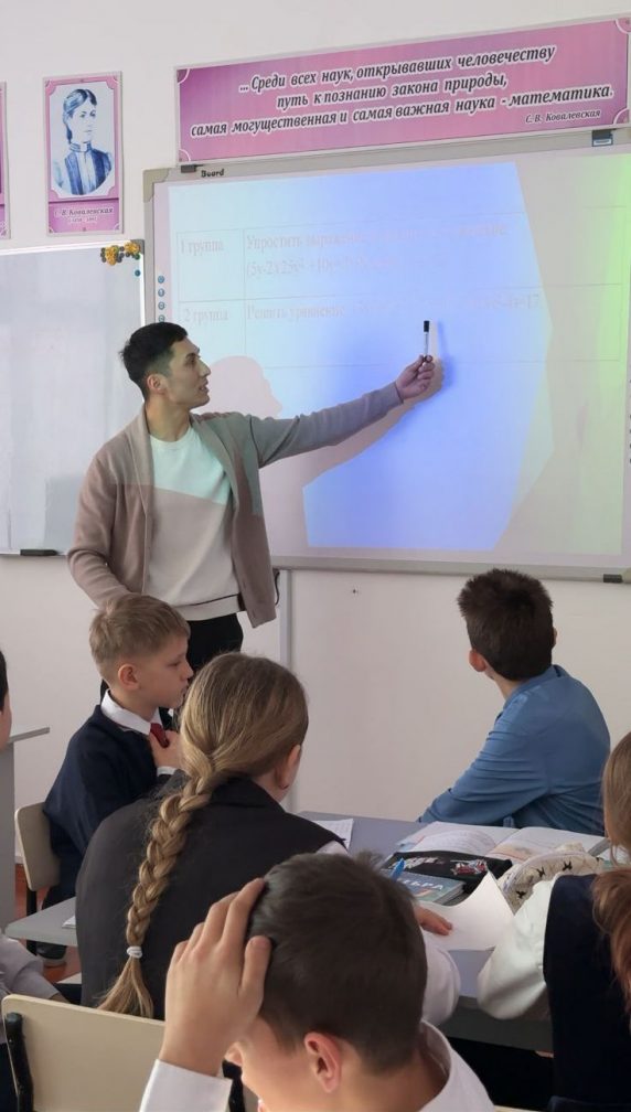 7-сыныпта алгебра пәнінен «Екі өрнектің кубтарының қосындысы мен айырмасының формулалары» тақырыбында ашық сабақ өткізілді. Сабақ барысында оқушылар формулалардың шығару жолымен танысып, оларды өрнектерді түрлендіруде және есептер шығаруда қолдану дағдыларын жетілдірді. Логикалық ойлауды дамытуға, алгебралық өрнектердің құрылымын талдауға және жұппен жұмыс жасау дағдыларын қалыптастыруға ерекше назар аударылды. Сабақ белсенді әрі жұмыс атмосферасында өтті. Оқушылар қызығушылық танытып, жақсы білім деңгейін көрсетті.
