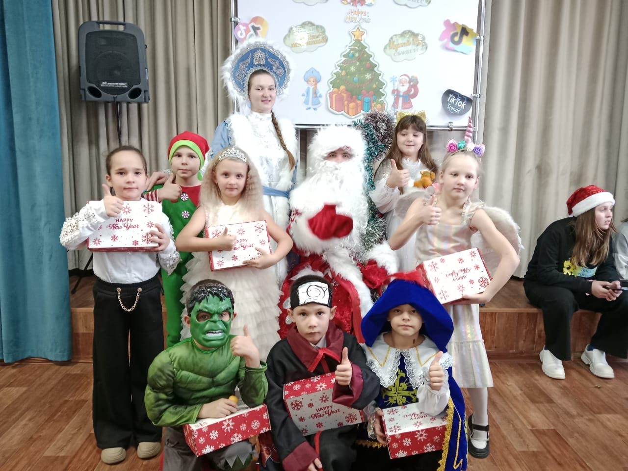 Балалар TikTok-тағы танымал трендтерге негізделген көңілді байқауларға, би, музыкалық және ойын тапсырмаларына үлкен қызығушылықпен қатысты. Трендтегі Аяз ата, блогерлер, дәстүрлі Аяз ата, Ақшақар, сондай-ақ Аю мен Қоян мерекелік көңіл күй қалыптастырып, балаларды белсенді түрде қатыстырды, олардың шығармашылық қабілеттерінің, қарым-қатынас дағдыларының дамуына және ұжымдық бірліктің нығаюына ықпал етті.