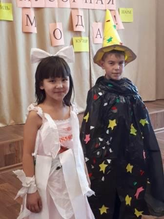 29 ноября прошёл юмористический конкурс: «Мусорная мода», где учащимся начальных классов нужно было приготовить костюм из бросового материала.